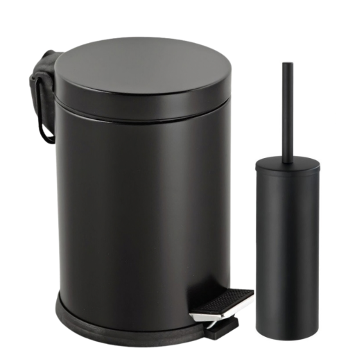 Set cos gunoi otel inoxidabil negru cu pedala 5l + perie wc otel negru